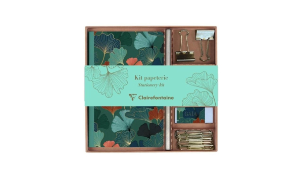 Clairefontaine Schreibset Gaia A5, Liniert, Blau / Notizbuch, Bleistift, Foldback-Büroklammer / Thema: Notizheft/-buch
