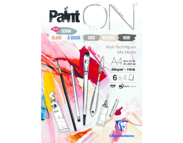 Clairefontaine Zeichenblock Paint On 24 Blatt, A4, 250 g/m2 / 24 Blatt, A4, 250 g/m2, mehrfarbig / Thema: Malblöcke