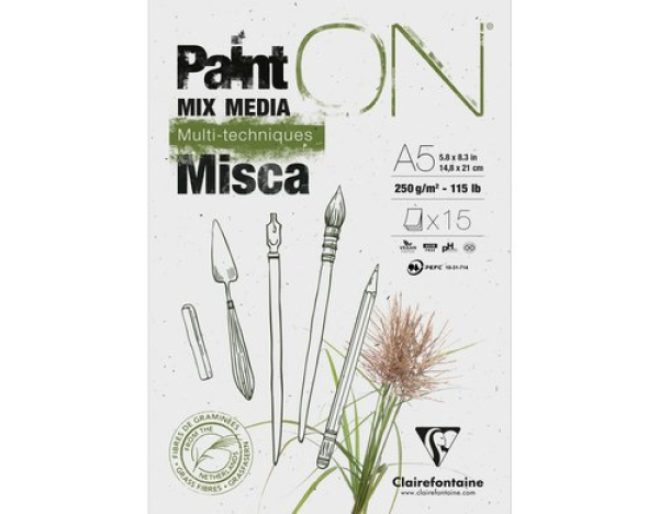 Clairefontaine Zeichenblock Paint On Misca 15 Blatt, A5, 250 g/m2, Weiss / 15 Blatt, A5, 250 g/m2, weiss / Thema: Malblöcke