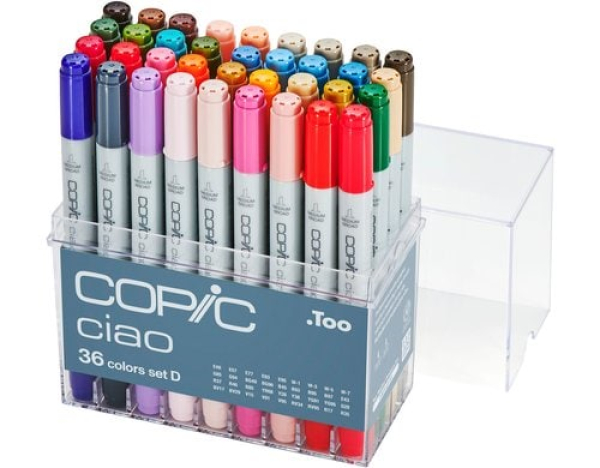 Copic Grafikmarker Ciao 36er D-Set / farbig, Doppelspitze, 36 Stk / Thema: Marker