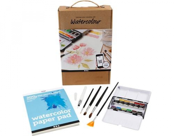 Creativ Company - Aquarellfarbe Lernset Aquarellmalerei 7-teilig / Inkl. Anleitung, Material und Inspirationen / Thema: Farben