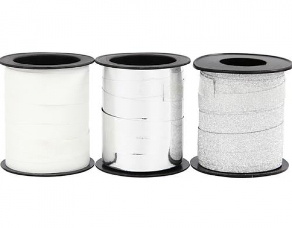 Creativ Company Geschenkband Weiss/Silber 1 cm x 15 m, 3 Stück / Kräuselband, B 10 mm, L 3 x 15 m / Thema: Geschenkverpackung