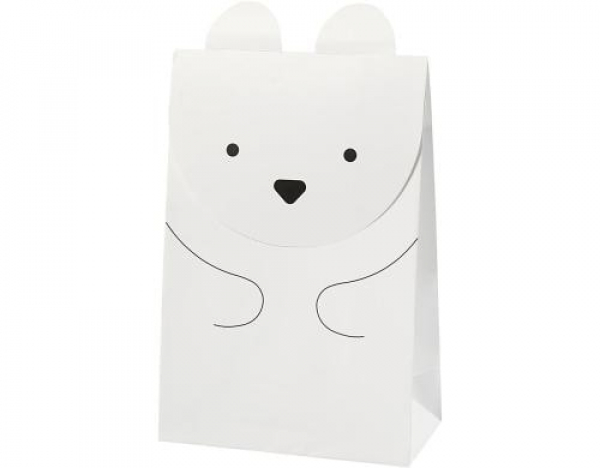 Creativ Company Geschenktüte Eisbär 6 x 12 x 18 cm, 6 Stück, Weiss / 6 Stück, 6 x 12 x 18 cm / Thema: Weihnachtspapeterie