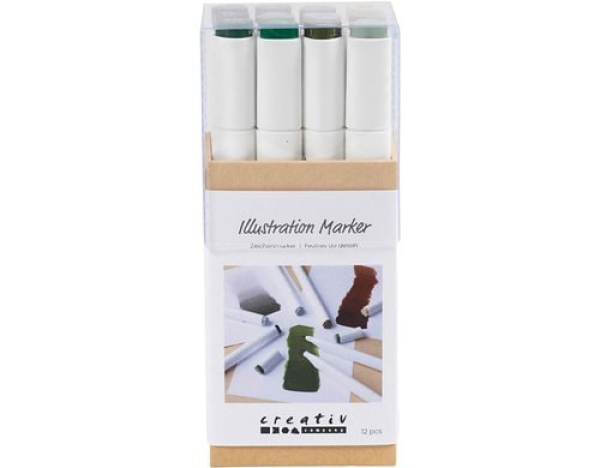 Creativ Company Kalligraphiemarker 1+ 8 mm, 12 Stück, Naturfarben / 1+ 8mm, 12 Stück / Thema: Marker