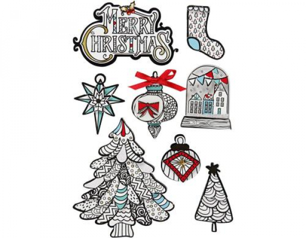 Creativ Company Weihnachtssticker 3D Weihnachtliche Motive, 1 Blatt / 32-80 x 25-65 mm, 8 Stück / Thema: Weihnachtspapeterie