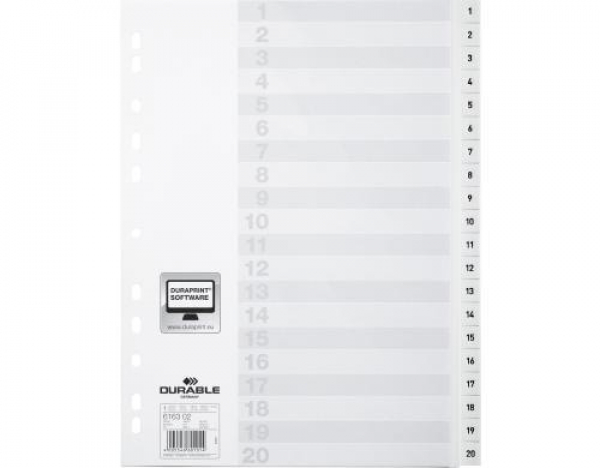 DURABLE - Register A4 1-20, mit Indexblatt / DIN A4, volldeckend, weiss, mit Indexblatt / Thema: Register