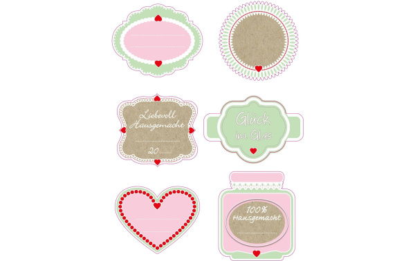 Dr.Oetker Flaschen-Etiketten 3222 50 x 50 mm, 4 Blatt / 24 Stk. 6 verschiedene Motive / Thema: Etiketten
