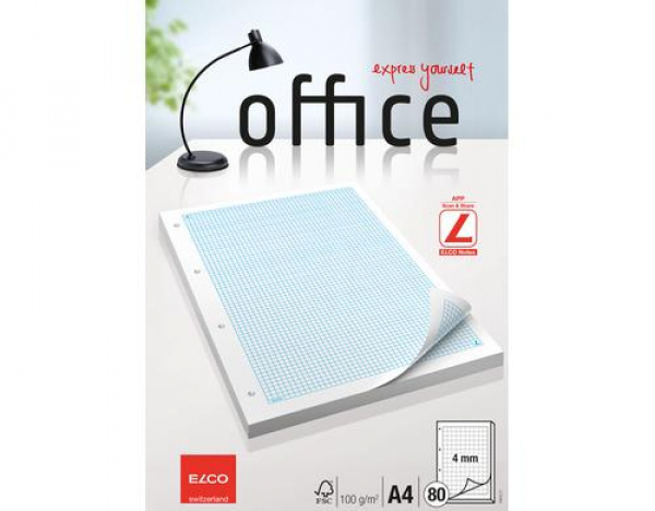 ELCO - Ringbuchblock A4 4-Fach gelocht 4 mm kariert, 1 Stück / 2 Blöcke: 100g/m2, 1 Block à 80 Blatt / Thema: Notizblock