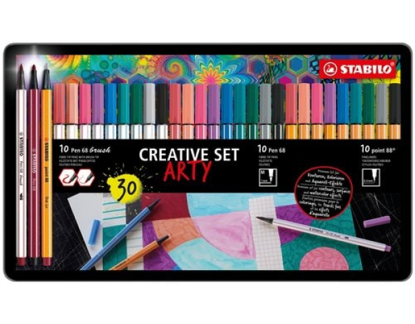 STABILO ARTY 30er Set / 30er Metalletui zum Aufhängen / Thema: Fasermaler & Fineliner
