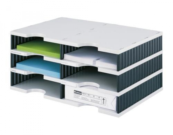 Styro - Dokumentenablage styrodoc duo Standard, Schwarz, 6 Fächer / hellgrau,schwarz / Thema: Dokumentenablagen