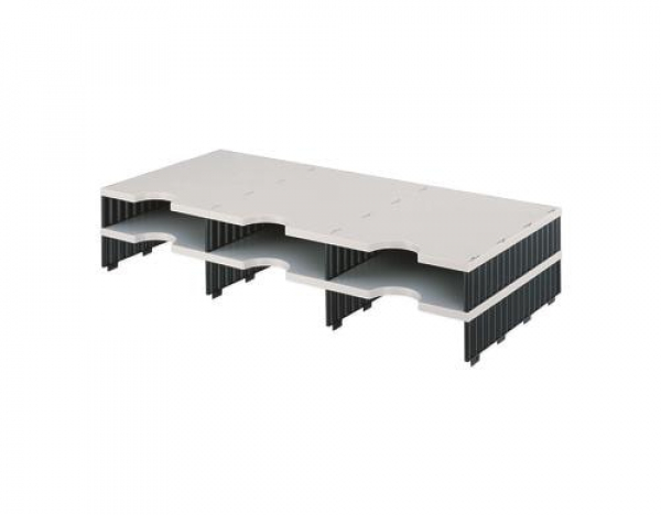Styro - Erweiterungsset Styrodoc Trio C4, Hellgrau/Schwarz, 6 Fächer / Aufbauelement, 6 Fächer, schwarz / Thema: Dokumentenablagen