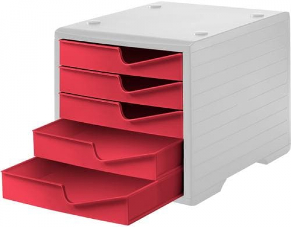 Styro - Schubladenbox Styroswingbox Lichtgrau/Cranberry / lichtgrau, 5 Schubladen cranberry vollfarbe / Thema: Schubladenboxen