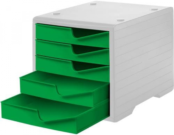 Styro - Schubladenbox Styroswingbox Lichtgrau/Gecko / lichtgrau, 5 Schubladen gecko vollfarben / Thema: Schubladenboxen