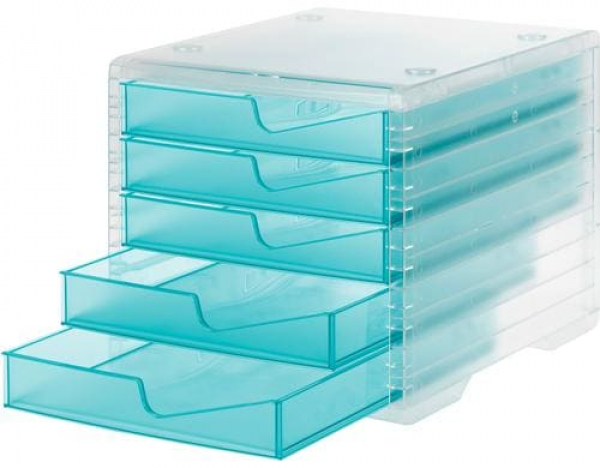 Styro - Schubladenbox Styroswingbox light Aqua / transparent, 5 Schubladen acqua transl. / Thema: Schubladenboxen