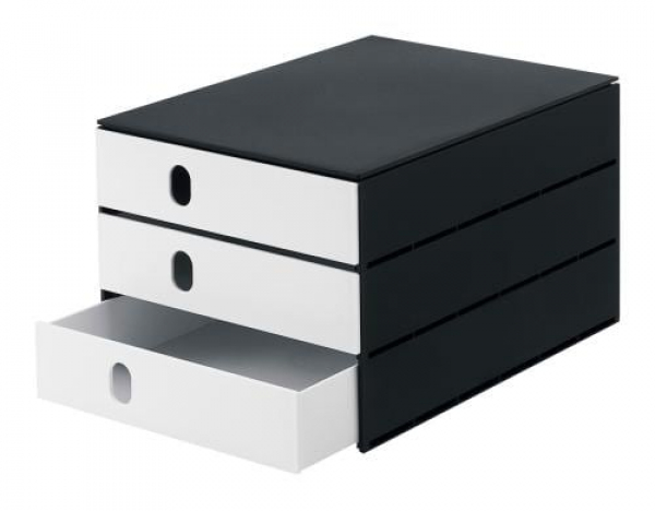Styro - Schubladenbox styroval pro 49 mm 3 Schubladen / Gehäuse schwarz, Schubladen weiss / Thema: Schubladenboxen