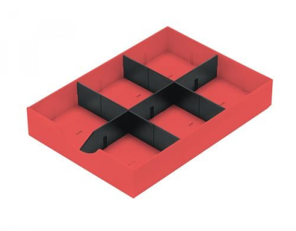 Styro - Schubladenelement Styrodoc Koralle/Schwarz / mit 1 Längs- und 2 Querstegen, korallenrot / Thema: Ablagekorb