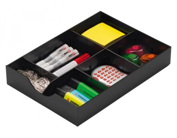 Styro - Schubladenelement styrodoc Schwarz / mit 1 Längs- und 2 Querstegen schwarz / Thema: Ablagekorb