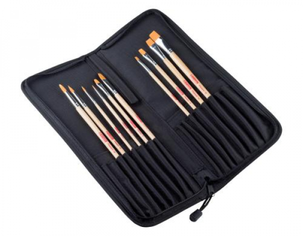 Talens - Acrylpinsel mit Organizer, 10 Stück / Grössen: 2-6-8-10-12-14-18, Polyester / Thema: Pinsel