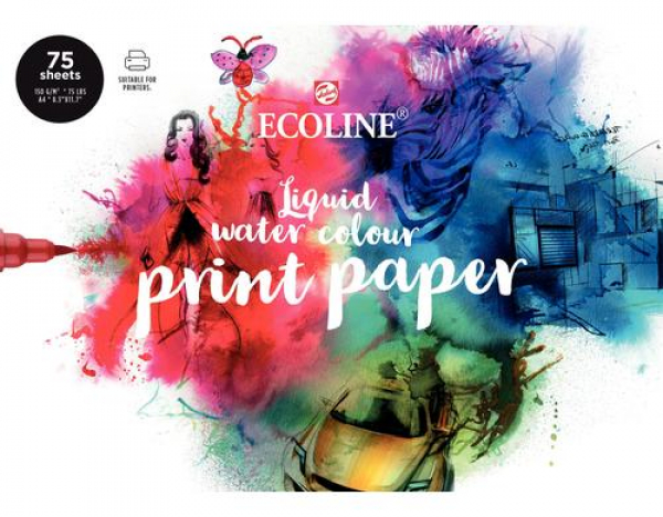 Talens - Aquarellblock Ecoline A4, 150 g/m2, 75 Blatt, Weiss / 150g/m2, 75 Stk., auch zum Drucken geeignet / Thema: Malblöcke