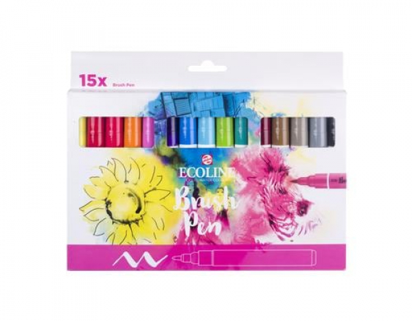 Talens - Fasermaler Ecoline 15er Set / 15 Brush Pens / Thema: Malstifte