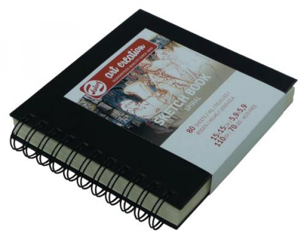 Talens - Zeichenblock 15 x 15 cm Schwarz / 110g/m2, 80 Bogen, Ringbuch, schwarz / Thema: Malblöcke