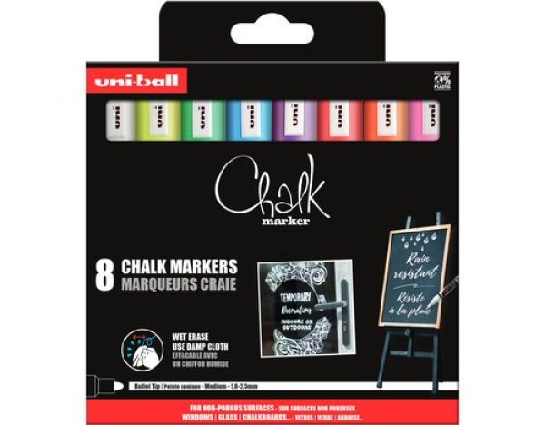 Uni Kreidemarker CHALK 1.8-2.5 mm, 8 Stück / 1.8-2.5mm, 8Stk. Assortiert / Thema: Marker