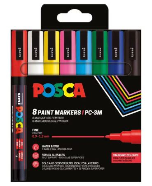 Uni Permanent-Marker POSCA 0.9 - 1.3 mm, 8 Stück