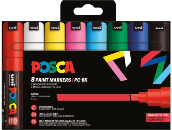 Uni Permanent-Marker POSCA 8 mm, 8 Stück