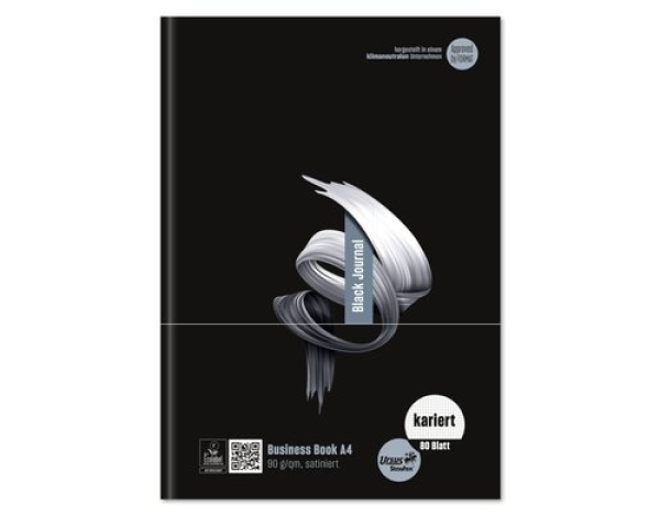 Ursusgreen Notizbuch Black Jornale Spiral A4, 80 Blatt, kariert / A4, 80 Blatt, 5mm kariert, 4-Loch, 90g / Thema: Notizheft/-buch