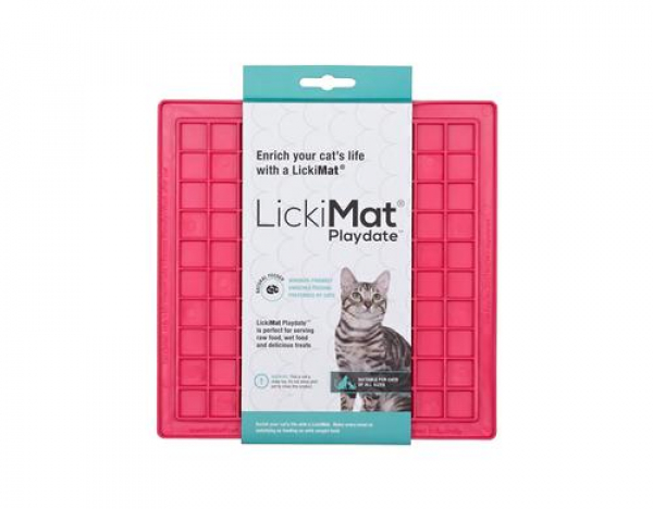 LickiMat Futtermatte Cat Playdate, 20 x 20 cm, Pink / 20 x 20cm / Thema: Katzennäpfe & Futterautomaten