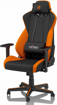 Lebhaft in knalligen Farben schillernder Gaming-Stuhl von Nitro Concepts, Stoffbezug in Inferno Red, bequeme Kaltschaumpolsterung, Top-Ergonomie dank