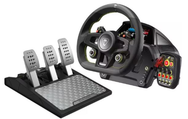 Mit dem Turtle Beach VelocityOne Race-Lenkrad- und Pedalsystem, das für eine realitätsgetreue Rennsimulation auf Xbox-Konsolen und Windows PCs entwickelt wurde, erreichen Sie eine neue Ebene des Realismus. Der K: Drive-Kraftrückkopplungsmotor liefert ultrarealistische Kraft, und die Dynamic Brake Tek-Wägezellenbremsen sorgen für realitätsgetreue Bremsleistung. Überwachen Sie die Telemetriedaten des Rennens in Echtzeit und passen Sie die Steuerung über das Race Management Display an. Für noch mehr Anpassungsmöglichkeiten verfügt die VelocityOne Control Unit über zusätzliche, umschaltbare Tasten. Ausserdem können Sie die Tuner-Begleit-App nutzen, um Bedienelemente neu zuzuordnen und Leistungseinstellungen vorzunehmen. Entwickelt für das ultimative Rennerlebnis, besitzt VelocityOne Race auch Mag-Shift-Schaltwippen, ein handgenähtes Lederlenkrad, einen Aluminium-Pedalsatz und vom Rennsport inspirierte Bedienelemente.