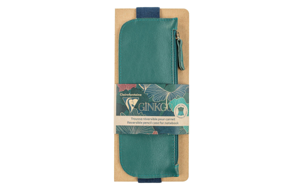 Clairefontaine Etui Ginkgo für Notizbuch / Leder, 19x7.5cm, grün/blau / Thema: Etui