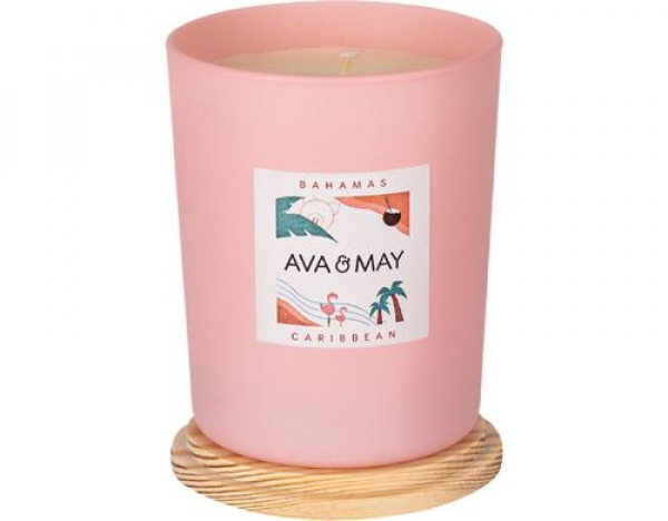AVA & MAY Duftkerze Bahamas 180 g / 8x8x10 cm, 100% Sojawachs, 40h Brenndauer / Thema: Duftkerzen