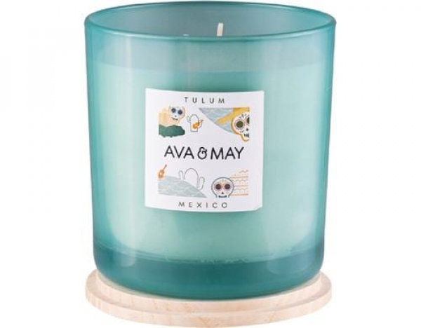 AVA & MAY Duftkerze Tulum Gross, 1150 g / 12x12x12.5cm, 100% Sojawachs,70h Brennd. / Thema: Duftkerzen