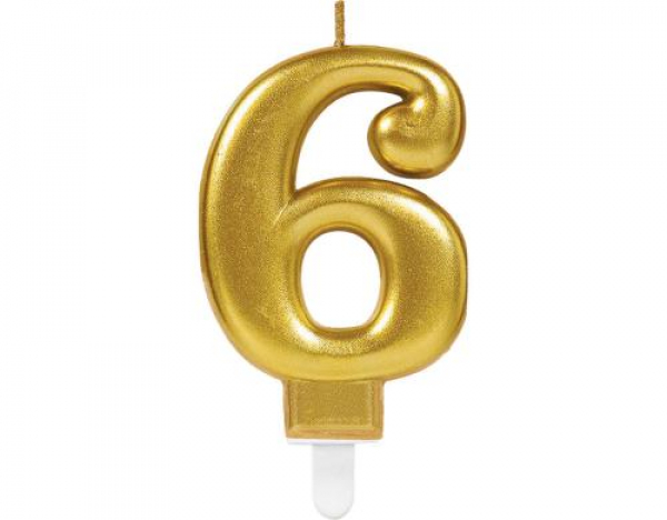 Amscan Zahlenkerze Nummer 6, 1 Stück / Gold / Thema: Dekokerzen