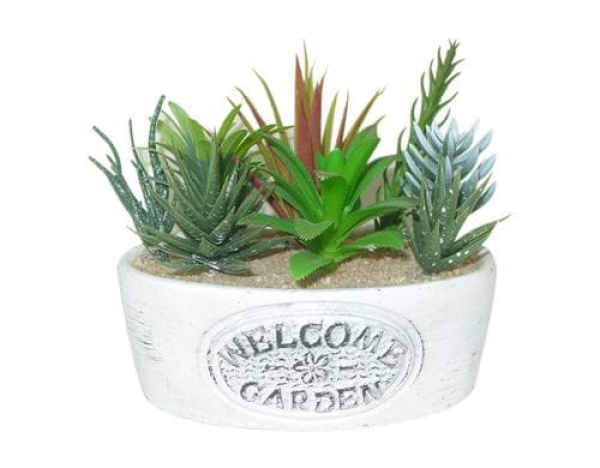 Dameco Kunstpflanze Sukkulenten «Welcome» 16 cm, mit Topf / Beton, Kunststoff, 16x20x11 cm (HxBxT) / Thema: Kunstblumen und -pflanzen