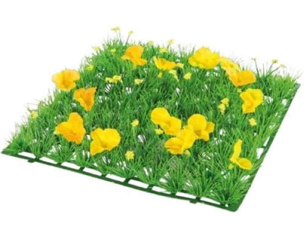 Dekomat AG Grasplatte Butterblume Gelb / 25x25 cm, Kunststoff, Kunstseide / Thema: Kunstblumen und -pflanzen