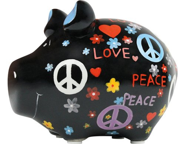 G. Wurm Spardose Hippie Schwein 12.5 x 9 x 9 cm / 12.5x9x9cm / Thema: Spardosen
