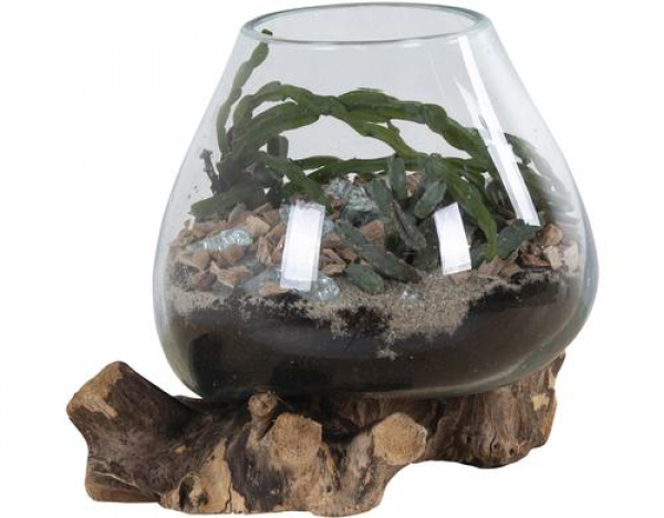 House Nordic Dekoschale San Marino 25 x 18 x 15 cm, 1 Stück, Nature / Teakholz, Glas, L:25,B:18,H:15cm / Thema: Deko-Accessoires