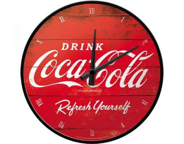 Nostalgic Art Wanduhr Coca-Cola Durchm. 31 cm, Rot/Weiss / 31x5.5 cm (DxT), exkl. AA Batterien / Thema: Wanduhr