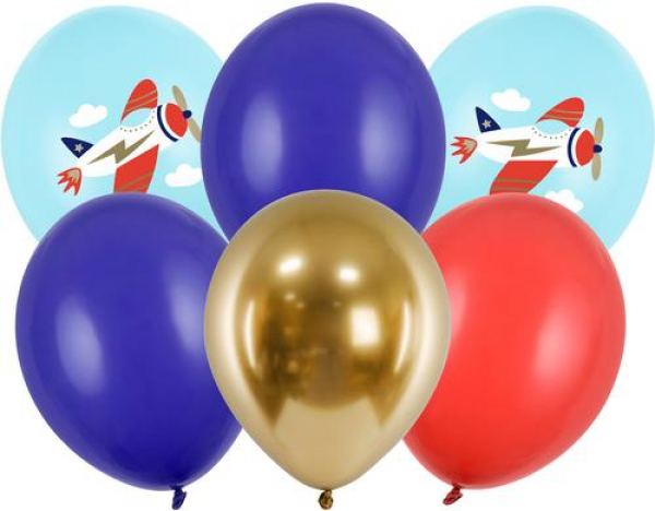 Partydeco Luftballon Flugzeug Mehrfarbig, Du 30 cm, 6 Stück / farbig, Du 30 cm, 6 Stück / Thema: Luftballon