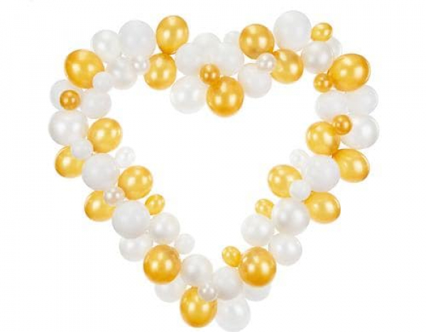 Partydeco Luftballon Herz Gold/Weiss, 166 x 160 cm, 68 Ballons / 166 x 160 cm, 68 Ballons / Thema: Luftballon