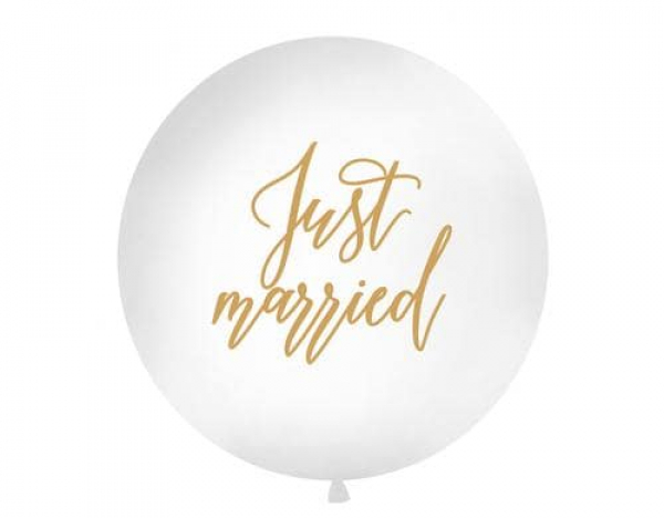 Partydeco Luftballon Just Married Du 1 m, Weiss / 1 Stück, weiss/gold, D: 1 m / Thema: Luftballon