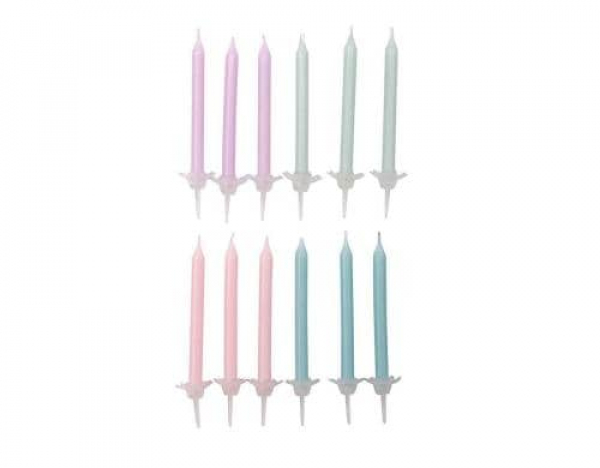 Rico Design Kerze Set Pastell mit Halter, 24 Stück / 24 Kerzen und Halter / Thema: Dekokerzen