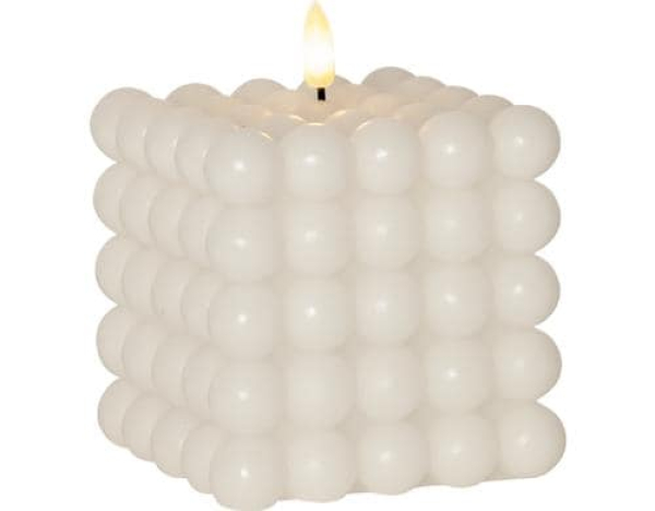 Star Trading LED-Kerze Pillar Flamme Dot, 10 x 12.5 cm, Weiss / Indoor, Weiss, 12.5 cm Höhe, Timer / Thema: LED Kerzen