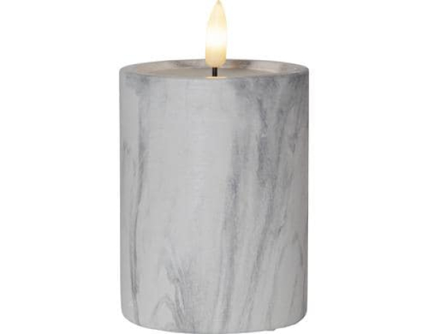 Star Trading LED-Kerze Pillar Flamme Marble durchm. 7.5 x 12.5 cm, Grau / Indoor, Grau, 12.5cm, Timerfunktion, 0.03W / Thema: LED Kerzen