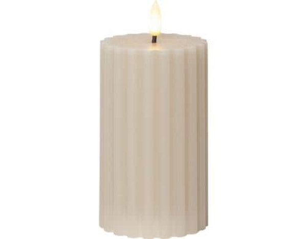 Star Trading LED-Kerze Pillar Flamme Stripe, durchm. 7.5 x 15 cm, Beige / IP20, Warmweiss, 1 LEDs / Thema: LED Kerzen