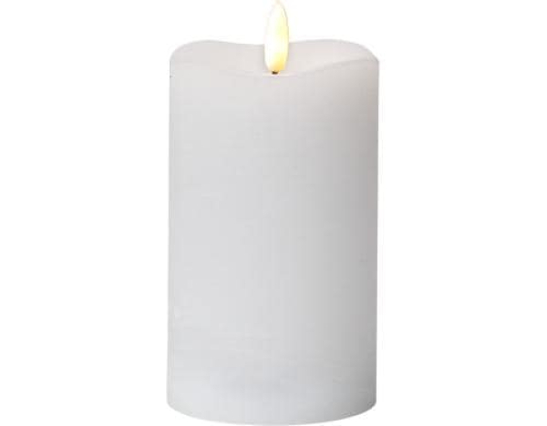 Star Trading LED-Kerze Pillar Flamme durchm. 7.5 x 14 cm, Weiss / Indoor, Weiss, 14cm Höhe, Timerfunktion / Thema: LED Kerzen