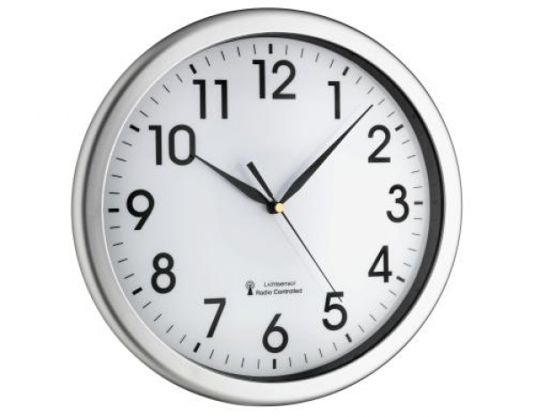 TFA Dostmann Funk-Wanduhr Corona Durchm. 30.8 cm, Silber / ohne Batterie / Thema: Wanduhr